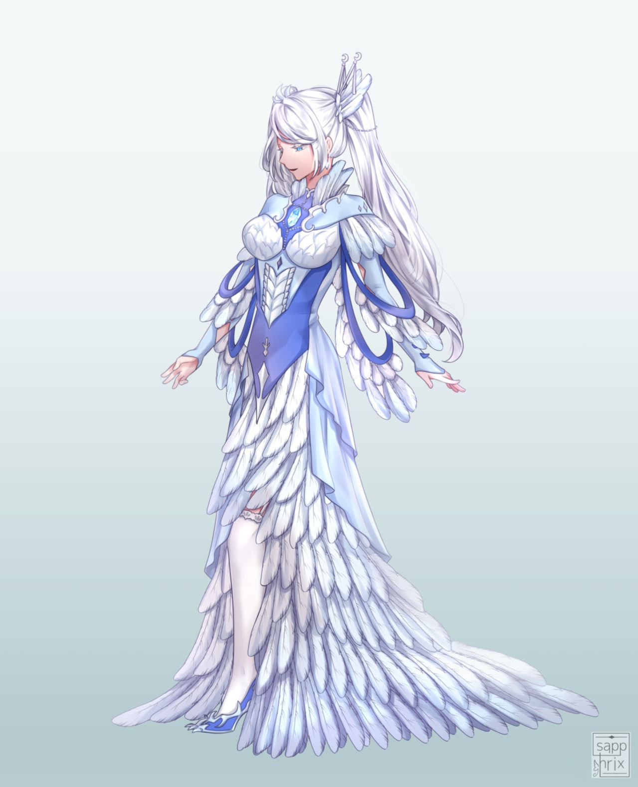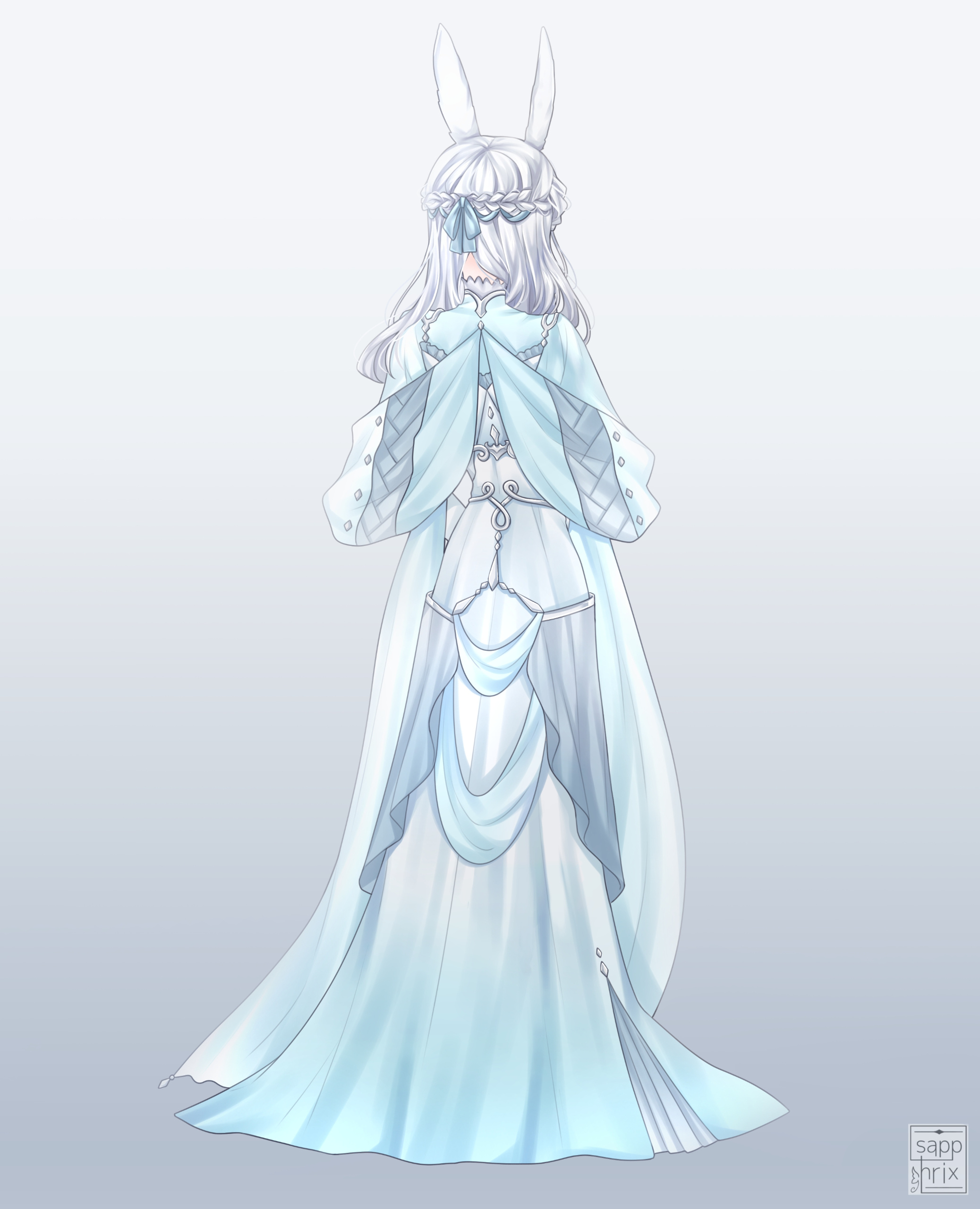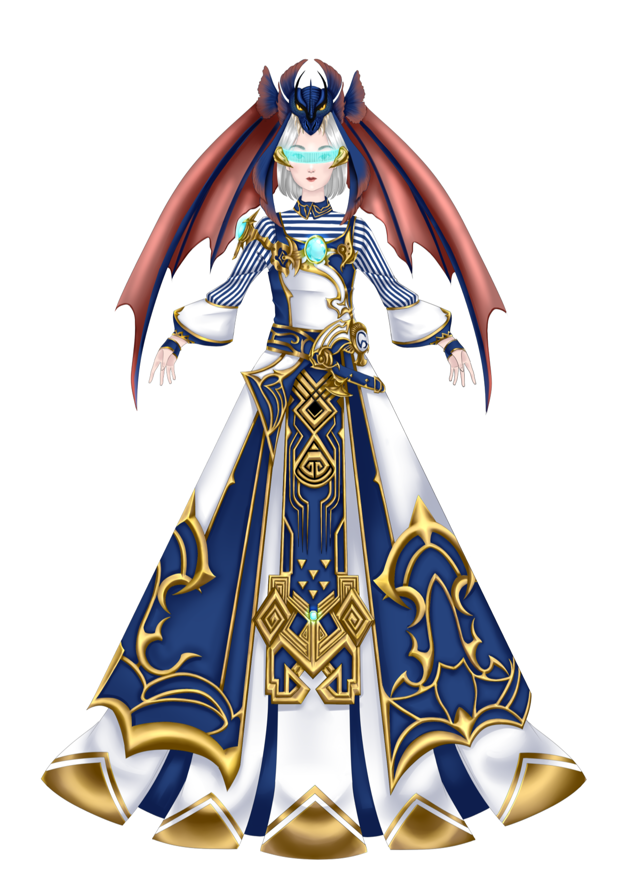 (MODEL: Kaolinite)Standing at the pinnacle of Alexandrian high fashion is a remembrance of the nation’s most precious monarch: Sphene, Queen of Reason, who sought to create a realm that transcended the one inexorable constant of death. Behold now: Regalia Eternal.Made with only the finest cloth and materials sourced from Alexandria, this garment fit for a monarch takes direct inspiration from Queen Sphene, adding a twist to Her Majesty’s attire to create something far more regal, while also paying respect to the Queen of Reason.While Sphene’s signature dress is well-known by all within her kingdom, the Regalia Eternal complements it further with jewels, sheer fabrics, and boa that forms into an elegant cape with chapel train. Alexandria’s proud emblem - a resplendent sword flanked with seraph wings - is displayed upon the wearer’s chest, and the innate mechanism within the dress projects that same image behind the head in a manner akin to a halo, giving an angelic backdrop to an already beauteous masterpiece.As an extra feature, the gown also comes with a mask resembling Queen Eternal: a particular entity whose determination to preserve her people’s well-being would be known as the stuff of legends. The mask also comes with its own voice modulation, adding an enigmatic air to those who enjoy concealing their identity - or simply like to sound cool.While the Endless may live on, fashion is also endless in its own right, and with the Regalia Eternal, you may take your place in the haute couture realm as its most fashionable queen.