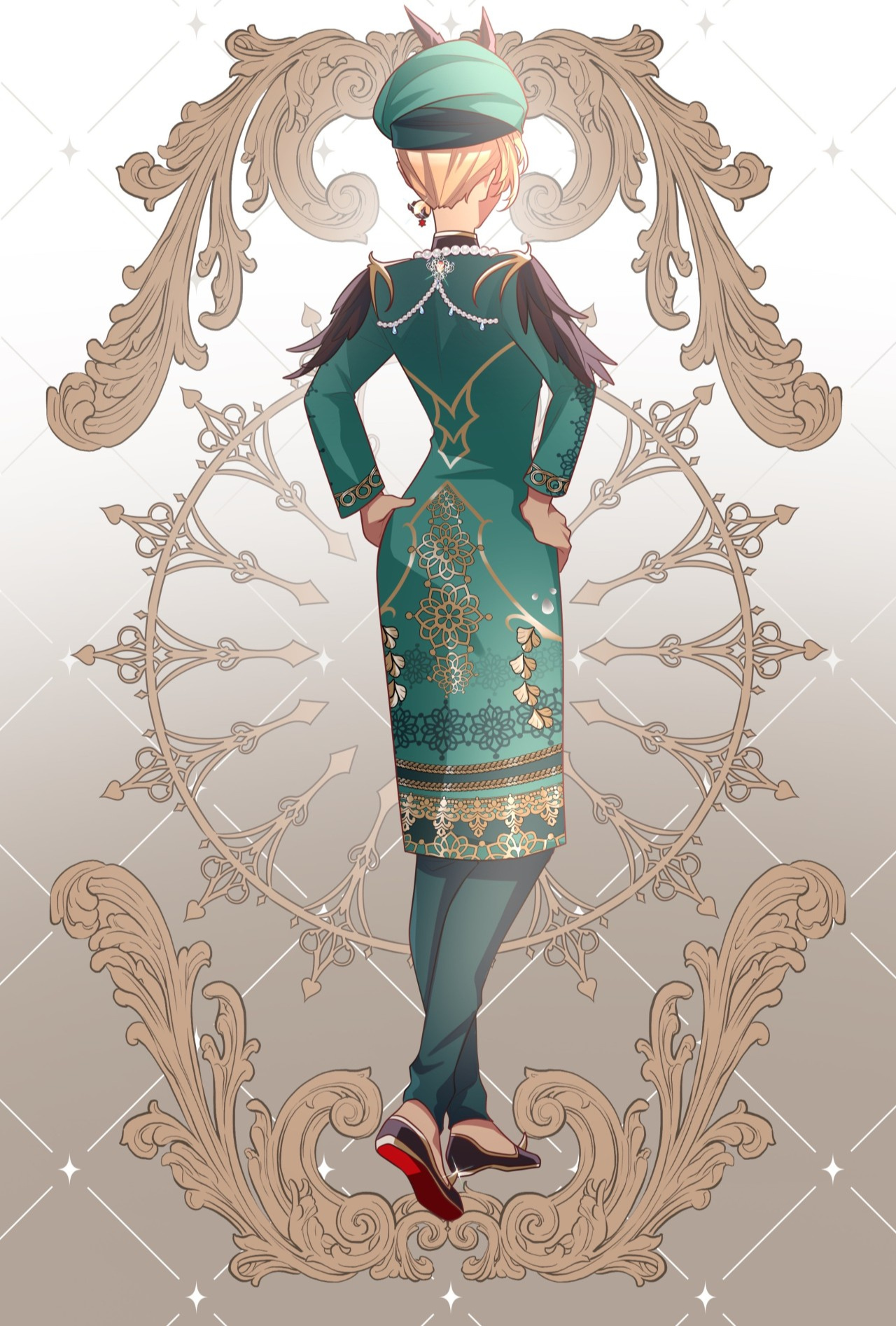 (MODELS: Bruno Bucciarati & Cluora Stefany)Tuliyollal itself would not be left out of its own clothing line. With fine wear for both males and females, the capital of Tural takes to the fashion scene with Morrow’s Majesty!Proudly shown on either garment is the flag of Tuliyollal, strategically set against the backdrop of greens and reds commonly worn amongst its people. Heavily embellished from head to footwear, this outfit is highly customizable as it also comes with a crown-like headpiece resembling Vollok Shoonsa: the gilded palatial structure which towers over the Aetherial Climb. Whilst a female variant is also available, both are further complemented by the veil once seen worn by the late Dawnservant’s Head of Reason.With each day brings new promises, and those wearing Morrow’s Majesty will do the proverb justice as they walk their own trail towards a new dawn of fashion - ever forward, starry-eyed… to an open sky.