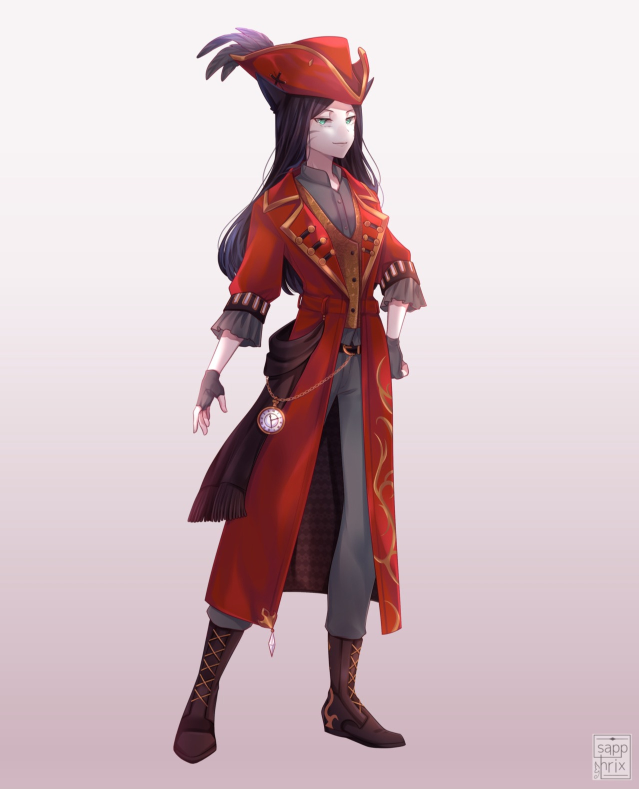 Voice References (Respectively): Ed Trotta & Mela LeeThe father and mother - or Begawan Sultan and Valide Sultan - of Thiji, respectively. Thiji and his brother Horu's color schemes are derived from them. Fafastima was originally the one in charge of the Higuri Regalia while his first son rose to prominence. A jovial and intrepid man, he made a lot of daring efforts to better himself and the Regalia, which included establishing a branch within Ilsabard, and more recently, wresting a fleet of ships from a rival pirate gang. Once the Regalia was well off, he resigned his role for other pursuits with Mimizo, passing the reins over to Thiji. After the release of the PiB Catalogue, he took great interest in the Hive Sherwani, and made it his signature outfit as a Corsair.Mimizo is the ideal image of a proper lady: demure, refined, self-sacrificing, and a faithful and loyal wife. However, her martial prowess is incredible, and was passed down to Thiji, while his knowledge and mastery of mercantilism came from his father. She possesses a pair of aetherially-attuned bladed fans with an owl embroidered on the cloth, implying she is an expert Dancer, as well as being the tutor of the "Vee" Triplets. She respects her firstborn son's motives, and does her best to keep his secrets well-guarded (the biggest one being that he is a peerless Dancer like her mother). She has also bore more sons and daughters than everyone within their circle had originally believed, alleviating the pressure from Thiji somewhat by securing their line for him.Looking to aid their family empire in their own special way, Lord Fafastima & Lady Mimizo took it upon themselves to establish and head the Mythril Wavetraders, a merchant fleet within the Regalia which also partakes in anti-privateering countermeasures, extending the Regalia's reach through the waters of Hydaelyn's numerous oceans, and unofficially making them Pirate Lords of The Bounty.Lord Fafastima & Lady Mimizo both revere Nald'thal, but the Magus Sisters even more so due to being born of the Near East.