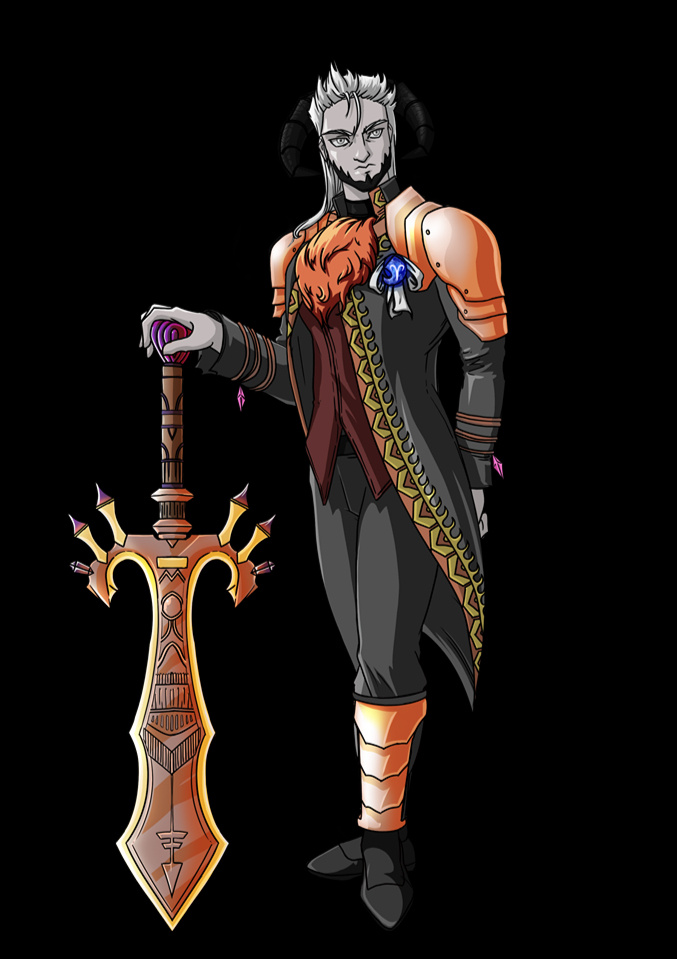 Voice Reference: Steve CannonHis younger twin brother, Horu Higuri is a mirror of Thiji. They share the same eye colors, but Horu has a silver left eye and an icy blue right eye. Also, his hair is more silver with icy blue highlights. Thiji does not speak of his brother much in open conversation, but respects him nonetheless. He is currently married happily to Umimi Umi, Head Secretary of the Main Branch, and has two children: Kakasu and Kakashoa.As next-in-line for the title of "Mythrite Sultan", Horu is the new Mythrite Prince, and as such, is acting head of the Regalia whenever Thiji is not present in the Main Branch, and is devoted to his family and duties. Most of his time is spent chronicling his brother's journeys, tending and training his children, and ensuring the good health of the Main Branch's sanctuary.